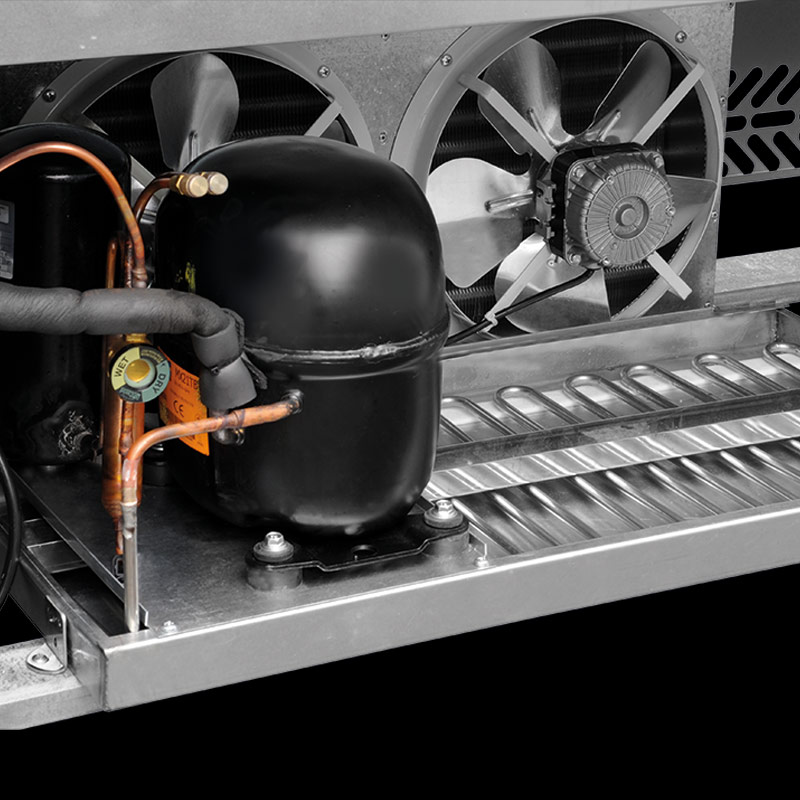 Unità refrigerante a monoblocco estraibile e tropicalizzata di serie (temperatura ambiente +40°C ed umidità relativa del 60%)
