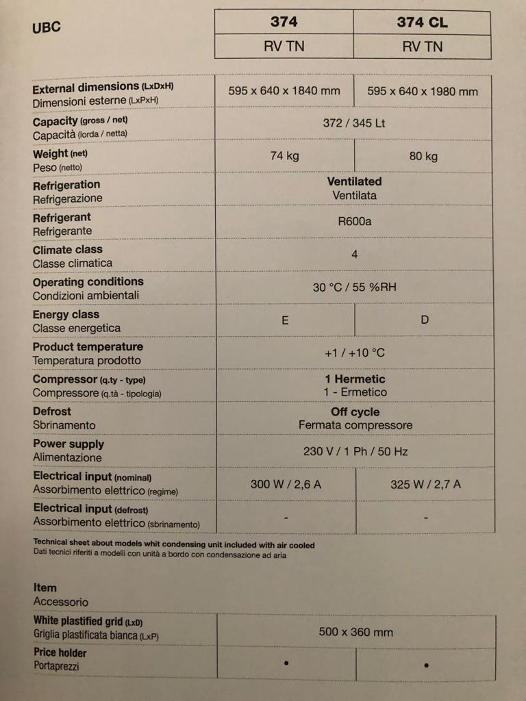 TEMPERATURA: 0/+10 °c (TN) -18/-22 °c (BT)